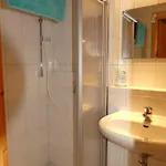 Et badeværelse er udstyret med separat toilet og en bruser.